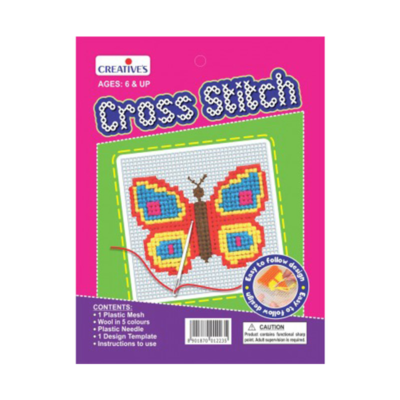 ‘Cross Stitch – Butterfly’ is a stitching kit that helps children to engage in creative activities. The kit contains a plastic mesh, coloured yarn, plastic needle, design template, wiggly eyes and instructions. Children can go through the simple and step-by-step instructions to understand the process of cross stitching and then use the butterfly template to make the butterfly on the plastic mesh. As they use the needle on the plastic mesh to make butterfly by cross stitching, they improve their fine motor coordination, dexterity and concentration. Children can also use the design to decorate their room or the house. Completing the craft successfully, gives children a great sense of accomplishment and pride.