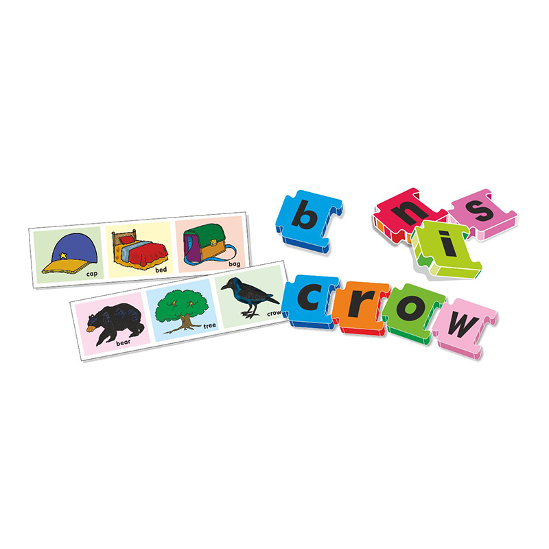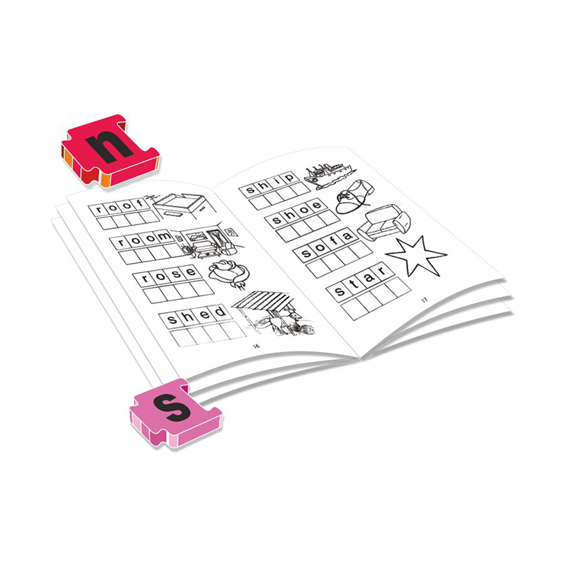 “Link ‘N’ Spell” is a comprehensive package to build everyday vocabulary and enhance early reading skills. The game comprises 50 durable and safe linkable letter tiles, 10 picture strips, a Practice Letter Mat, ‘Activity Book’, and an ‘Activity Guide’. Using the plastic letters and letter mat, children build more than 500 hundred essential everyday words by joining the letter tiles. To reinforce and strengthen letter recognition, letter sounds, spelling, and vocabulary children may complete various activities given in the ‘Activity Book’ and ‘Activity Guide’.