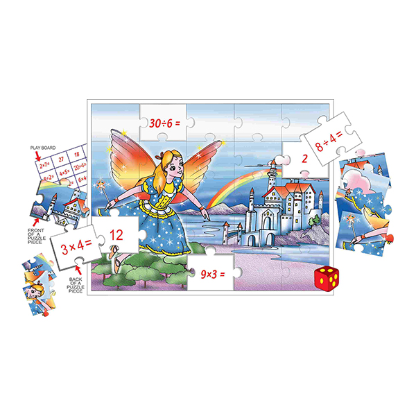 ‘Math Puzzles-Multiplication and Division’ is one of the most popular puzzle games by Creative’s. Children choose a picture puzzle and the corresponding play board. Taking turns, children read the number or number sentence printed on the back of their puzzle pieces. If there is a number sentence they’ll look for its answer or if there is a number they’ll look for its matching number sentence on the play board and put that puzzle piece at the corresponding answer space on the board picture side up. When all the numbers and number sentences are matched correctly they will see that their beautiful picture puzzle is correctly matched. The pack includes three 25 piece puzzles, 3 Play Boards, a special dice.