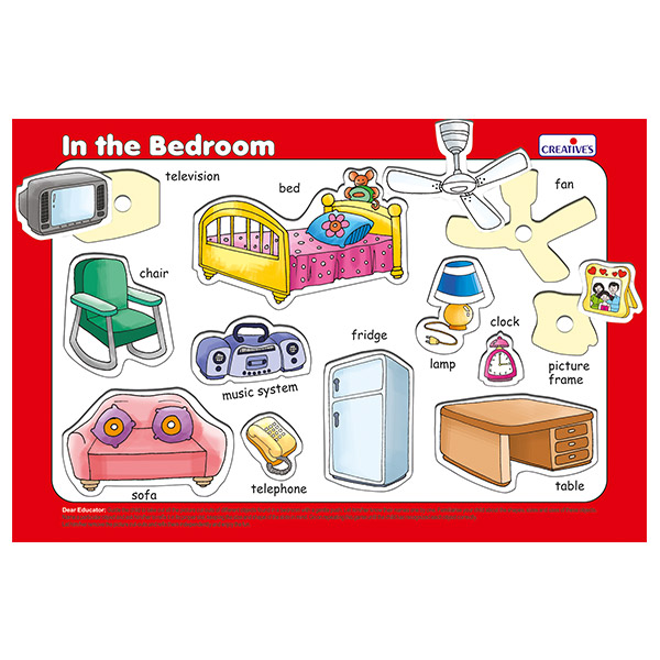 “Play ‘N’ Learn 2 in 1– In the Kitchen and In the Bedroom” is a set of two lift and fix puzzle boards by Creative’s that make your child aware of two important rooms of a house; Kitchen and the Bedroom. Each board has the pictures of different objects and articles found in a bedroom and a kitchen. The child matches these object pieces using the shapes slots on the respective boards, developing their hand-eye coordination and problem solving skills.