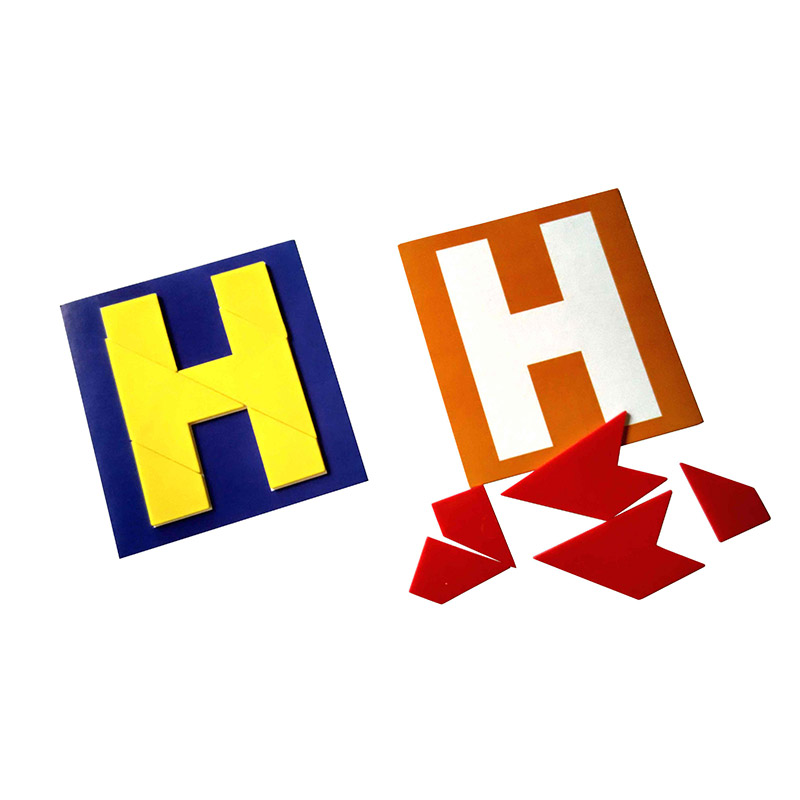 “Thinking Puzzles – Letter H” Challenging your child’s brain is an important part to their cognitive development. The letter puzzles are fun and very good brain games. They look like they are easy to solve. But, it’s not so easy! In this puzzle game the child is required to form a capital letter “H” from all the 6 bright and durable plastic pieces on one of the given printed letter H Base Card. The child may play with it again and again to improve his/her performance. The game can also be played by two players/teams. This puzzle game includes: 2 sets of 6 pieces each of letter “H’ made of safe plastic and 2 printed Base Cards of letter “H”.